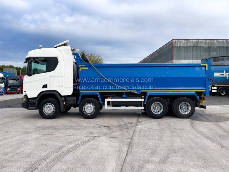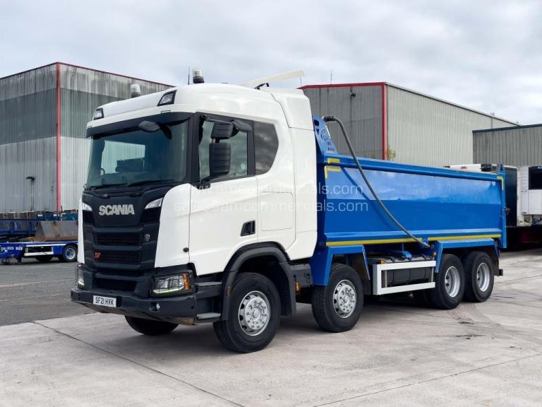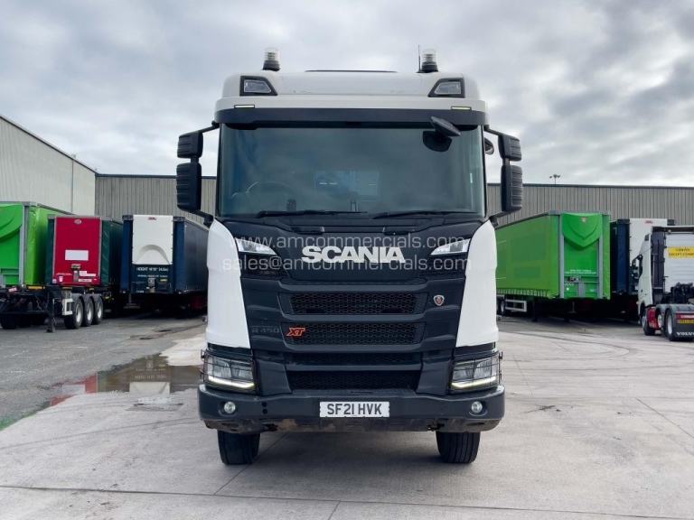 2021 (21) Scania R450 XT Tipper. 8X4, 32 Tonne, Thompsons Steel Tipper Body, Automatic Gearbox, Engine Brake, Cruise Control, Air-Operated Tailgate, VPG Onboard Weigher, Binotto Tipping Ram, Easy Sheet, Camera System, Beacons, Single Bunk, Fridge, Infotainment Premium, Immaculate Condition, MOT 30th June 2026, 403K KMS, Finance Available Subject to Status.