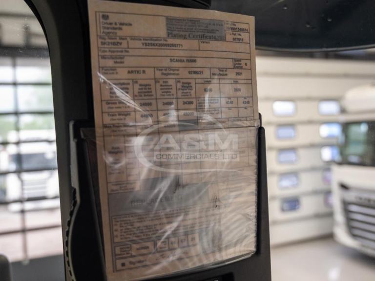2021 (21) Scania S500 Highline 6X2 Midlift, Sliding Fifth Wheel, Alcoa Alloy Wheels, Side Skirts, Visor, Rear Wall Lockers, Leather Seats, 640L Fuel Capacity, Rear Wall Lockers, Fridge, Scania Infotainment, Camera System, Multifunction Steering Wheel, 724K KMS. MOT 30 April 2026! Finance Available Subject To Status.