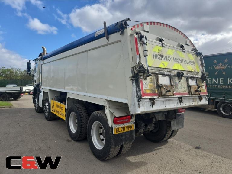 Alloy Wheels, Front Strobe Lighting, Roof Beacons, Smart Express 3 Sheeting Controls, Pedestrian Safety Visibility Window, Tarmac chutes, Rear Strobe Lights, Work Light, Eberspacher Night heater, Camera System (All Sides inc. inside body), Hill Hold Assist, Differential Lock x2, Air Conditioning Climate Control, High Voltage Detection System, Adaptive Cruise Control, Lane Departure Warning, Front Collision Warning, Speed Limiter, 3 Stage Engine Brake, VPG Onboard Weigher, FM/AM Radio, Bluetooth Phone Connectivity, Electric & Heated Mirrors, Tool Box Offside.