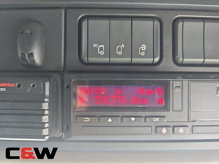 Full Air Suspension, Roof Line Headlights, Roof top Beacons, Front Fog Lights, Front Grill Strobe Lights, Large 620L Fuel Tank, Rear Work Lights x3, Heated Drivers Seat, Fridge, Power Inverter, Nearside Camera System, Pioneer Touch Screen FM/AM Radio, Hill Hold Assist, AEBS System, Adaptive Cruise Control, Lane Departure Warning, Front Collision Warning, Speed Limiter, Differential lock, Air Conditioning A/C Climate Control, Night Heater, 3 Stage Engine Brake, PTO, Bluetooth Phone Connectivity, Electric & Heated Mirrors, Sun Roof.