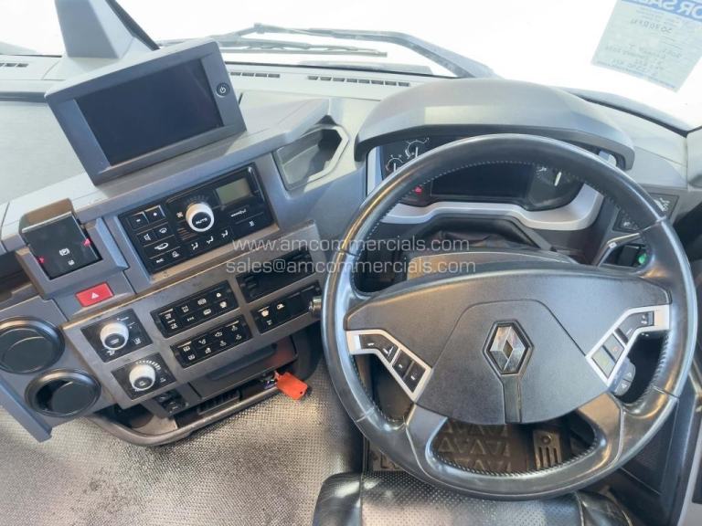 2021 (70) Renault T 520 High Cab. Automatic Gearbox, 6X2 Tag Axle, Air Horns, Fixed Fifth Wheel, Roof Beacons, Visor, Fog Lights, Rear Working Lights, Rear Mounted Batteries, Leather Seats, Leather Steering Wheel, Alloy Wheels, Twin Bunk, Fridge, Microwave, 593K KMS. Finance Available Subject To Status.