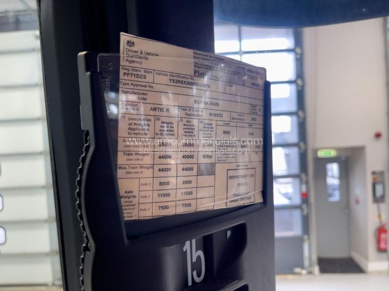2022 (71) Scania R450 Highline. 6X2 Tag Axle. Euro 6, 2 Pedal Opticruise Automatic Gearbox, Walking Floor Hydraulic Kit, Fixed Fifth Wheel, Side Skirts, Skylights, Mid-Lights, Fog Lights, Visor w/LED's, Roof Beacon, Rear-Mount Batteries, Single Bunk, Storage & Lockers, Leather Seats, Scania Infotainment, Multifunction Steering Wheel, Camera Kit, Fridge. 432k kms. MOT 28 February 2026 - Excellent Condition. Large Choice Available. Finance Available subject to status.