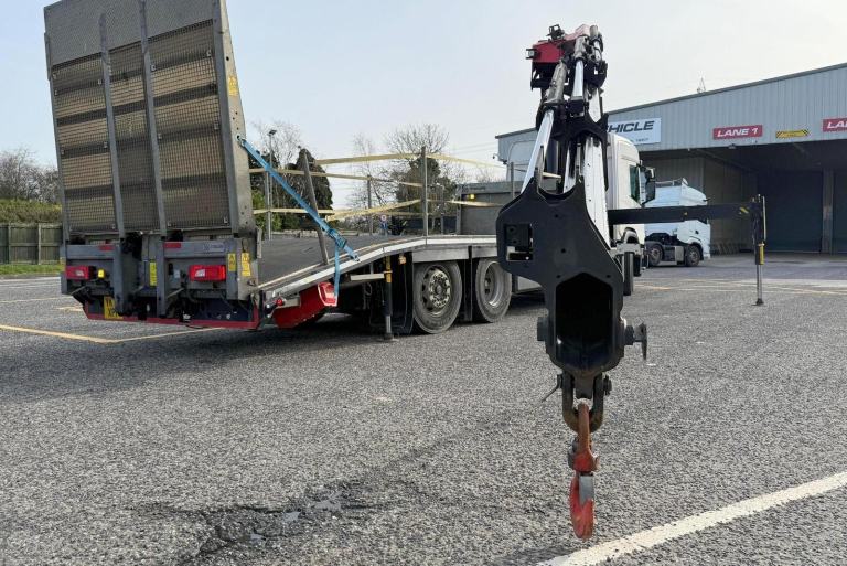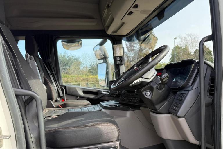 Sleeper cab, VPG on board weigher, Slew restrictor, Front & rear stabiliser legs, Spreader plates, Rear lift & steer axle, Body work lights, Fall arrest, Automatic gearbox, Reverse camera, Bluetooth, Air con, Body length 26.2ft, Full width ramp