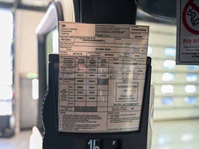 2022 (72) Scania S500 Highline. 6x2 Midlift, 2-Pedal Opticruise, 5-Stage Retarder, Sliding 5th Wheel, Visor w/LEDs, Fog Lights, Twin Fuel Tanks 860L Capacity, Rear-Mount Batteries, Run-Up Ramps, Walkovers, Camera Kit, Twin Bunk, Infotainment Premium with SatNav, Fridge, Microwave, Leather Steering Wheel, 449k km. Excellent Condition. Finance Available subject to status. Choice Available.