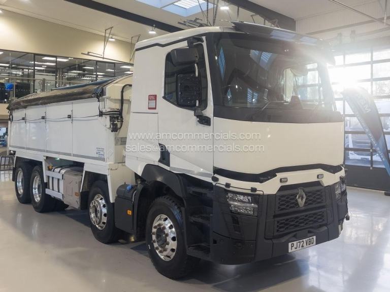 2023 (72) Renault C Tar Spec Tipper, 8X4 32T Tipper, Automatic Gearbox, Side Mounted Batteries, Weightlifter Body with PPG Lining, Remote Electric Easy Sheet, Ad-Blue, Toolboxes, Air Operated 2-Piece Tail Gate, Tar Chutes, Alloy Wheels, Side Guards, Sun Visor, Light Guards, Single Bunk, Fridge, Touchscreen Media with SATNAV, Excellent Condition, MOT 28th February 2026, 302K KMS, Finance Available Subject to Status.
