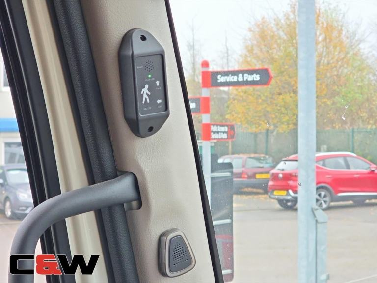 DVS System, Proximity Sensors, Passenger Door Extra Visibility Window, Passenger Bench Seat, Pedestrian warning system, Adaptive Cruise Control, Lane Departure Warning, Front Collision Warning, Speed Limiter, Engine Brake, FM/AM Radio, Bluetooth Phone Connectivity, Electric & Heated Mirrors.