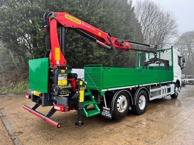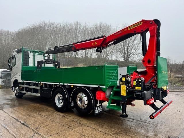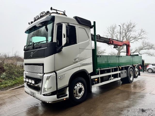 2024 74 VOLVO FH 500 EURO 6 sleeper cab, 6x2 rear lift/steer, PMH 22ft alloy drop side, Walk-in rear steps, Palfinger PK19.001 SLD5 double extension remote control fold away crane, quick release Kinshofer block grab, VBG draw bar hitch, tool box, Dura-brite alloy wheels, work lights, beacons, KELSA LO/MID/HI bars, spot lights, air horns, sun visor, LED lights, factory camera/scanner system, Auto, adaptive cruise, lane assist, anti collision, VAS, central locking, heated air seat, air con climate control, night heater, electric windows/mirrors, sun roof, fridge, cupboard pack, virtual dash, touch screen sat nav media system, 1 owner. 32,000kms, 10/26 MOT, £184,950 + VAT (S7 CGC)