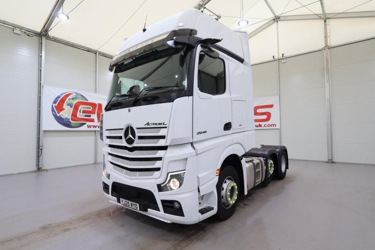 2025 (25 PLATE) MERCEDES BENZ ACTROS 2548 GIGA SPACE 6X2 EURO 6 TRACTOR UNIT, BRAND NEW DELIVERY MILEAGE ONLY, 1 YEAR FULL MERCEDES WARRANTY FROM D.O.R, 2ND AND 3RD YEAR ENGINE AND GEARBOX WARRANTY ONLY R&M NOT INCLUDED, £3,000 WARRANTY EXTENSION FOR 4TH AND 5TH YEAR, MERCEDES BENZ SIGNAL AIR HORNS, MIRROR CAM, MBUX MULTIMEDIA COCKPIT, AIR DEFLECTOR KIT, FRIDGE, KEYLESS START, EXTERIOR SUN VISOR, PNEUMATIC PIN SLIDING FIFTH WHEEL, OVER BED STORAGE NET, RADIO/STEREO, A/C CLIMATE CONTROL, OVER-BED STORAGE NET, DIGITAL TACHOGRAPH, 2-PEDAL, PRICE IS POA