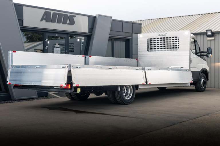 This is our iveco Daily LWB Dropside we have produced and is a new product from AMS. Fully alluminium and ultra lightweight this is the best tool for any kind of work where a dropside is needed.