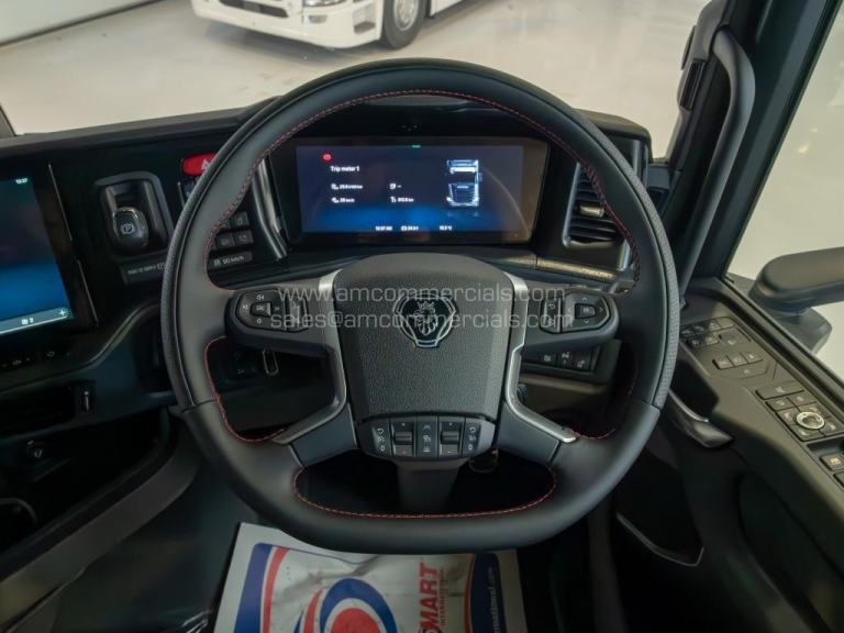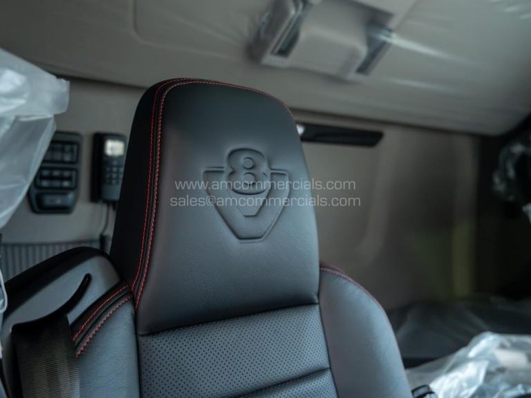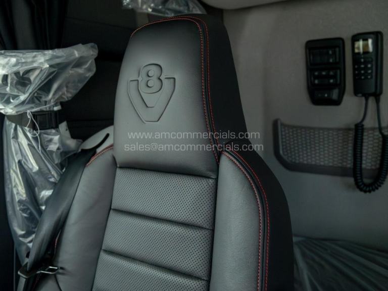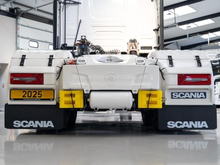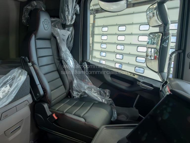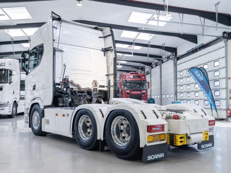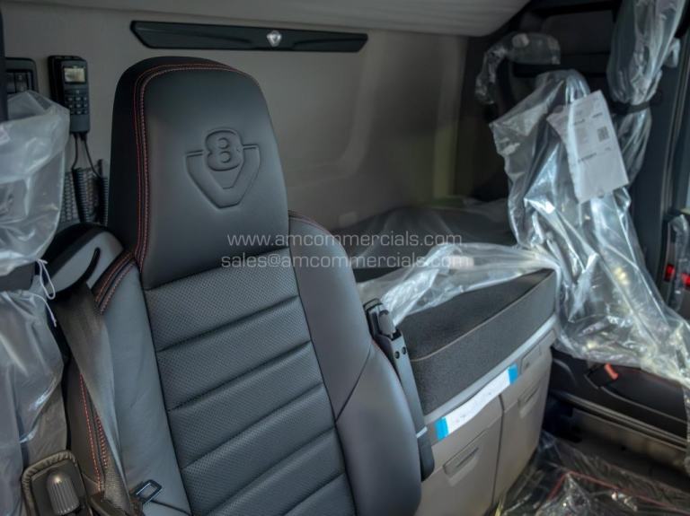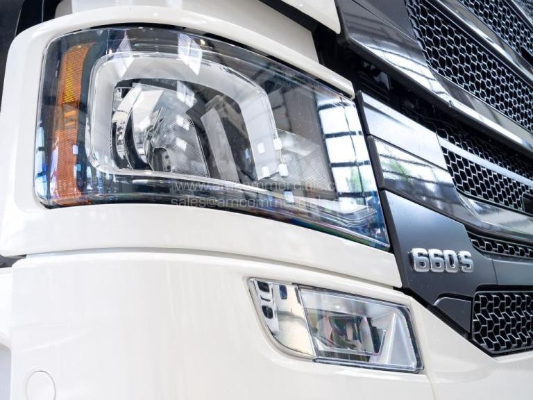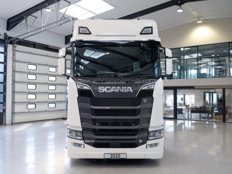 New 2025 Scania 660S V8 Highline. Euro 6, 6X2 Twin Wheel Tag, 2 Pedal Opticruise Gearbox, 2950mm Wheelbase, Full Air Suspension, PTO Prep, Right-Hand Drive, Retarder, Air-Operated Sliding Fifth Wheel, Colour-Coded White Chassis, Skylights, Fog Lights, Xenon Headlights, Alcoa Durabrights, Front Super Singles, High Sleeper Cab, Sunroof, New Digital Smart Dash & Media System, Twin Bunk, Full Premium V8 Stitched Leather Seats - Heated & Vented, Fridge, Microwave, Coffee Maker, Delivery Miles Only. Top Spec Truck. Finance Available subject to status.