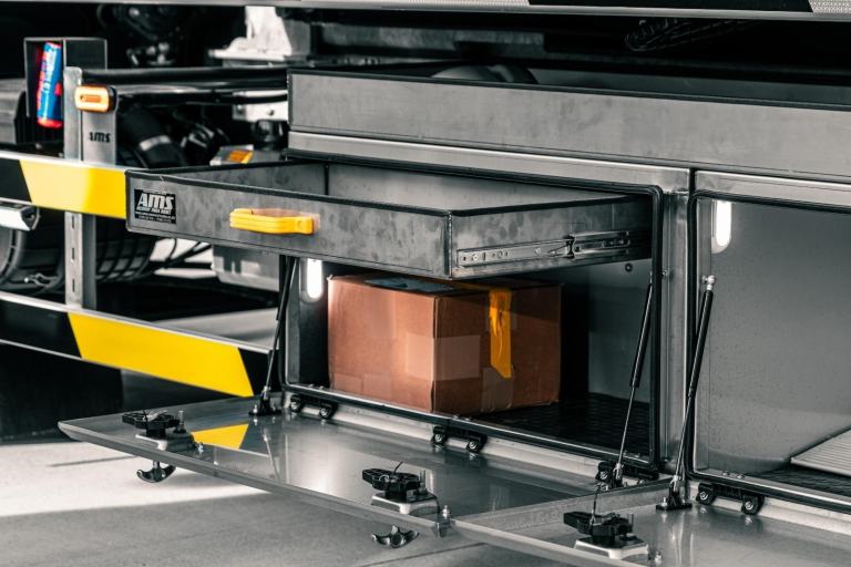 AMS are not general fabricators, we are car transporter / recovery truck specialists and that is reflected in the quality of our product. Our transporter bodies use very lightweight but durable materials and a level of attention to detail that few can rival. Even the rivets and bolts that we use are specially chosen so that we know our recovery bodies meet both the need for light weights but durability and long service lives out in the real world. Also, this level of engineering means that our transporter bodies can meet type approval requirements if needed.