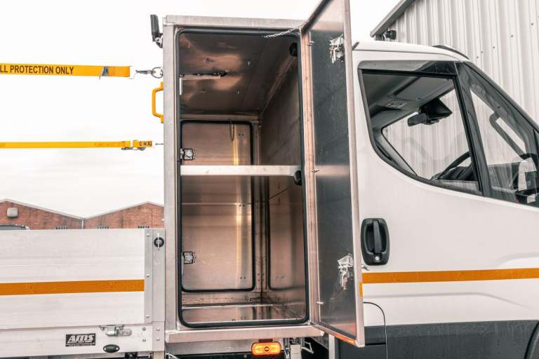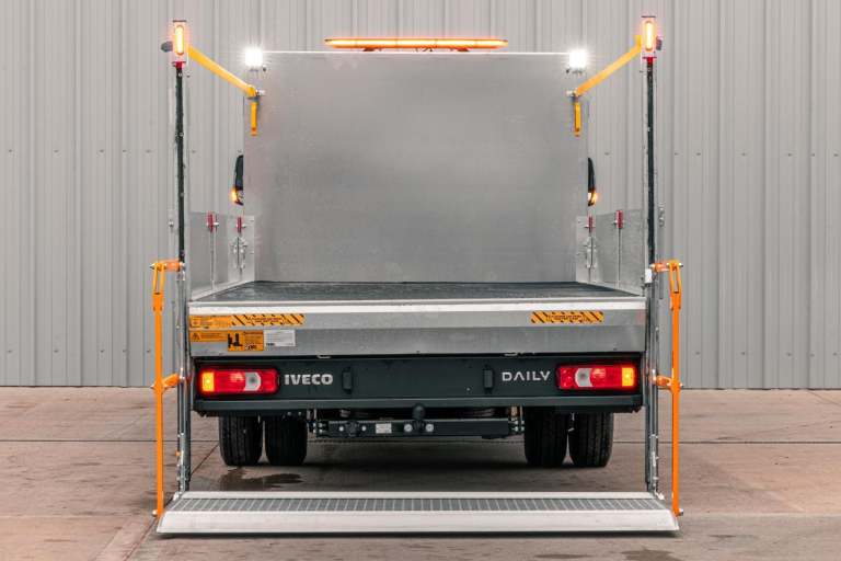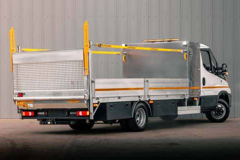 This stunning 5.2 Tonne fully loaded traffic management system is perfect for work around cities! With a 7.2T being too big for some jobs but 3.5T not having the payload required this is the perfect in-between for work in small spaces. With its alloy tool pod fitted to the front and also a 4.4metre dropside body this is ultra versatile for any job whatsoever. 500kg DEL tailift fitted to the rear with all our standard options we fit makes the the ultime body with the best payload physically possible. , The Iveco itself is also top of the range with 3.0 Heavy duty engine and 8 speed auto, Factory Air suspension on rear axle, LED Headlights, navigation, suspended drivers seat, office tray table in 3rd seat and so much more! this is not to be missed and we have these ready to drive away today