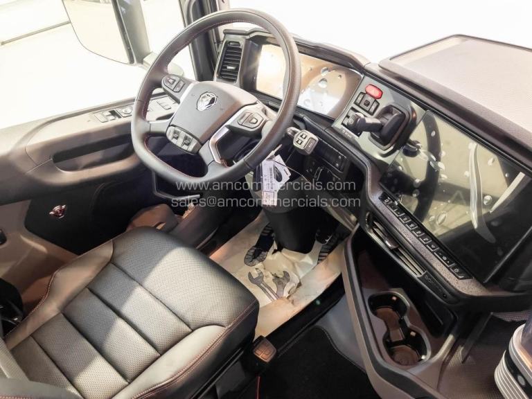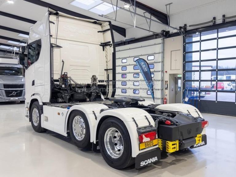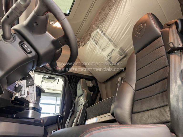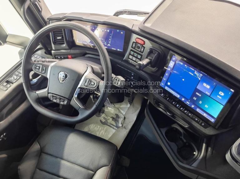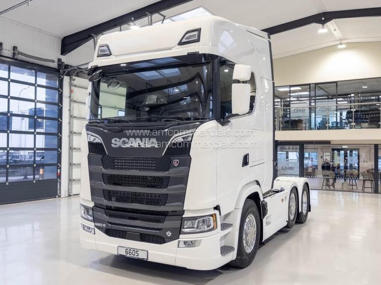 New 2026 Scania 660S V8 Highline. Euro 6, 6X2 Midlift, 2 Pedal Opticruise Gearbox, Left-Hand Drive, Full Air Suspension, Retarder, Sliding Fifth Wheel, Skylights, Fog Lights, Alcoa Durabrights, Front Super Singles, High Sleeper Cab, Sunroof, New Digital Smart Dash & 12" Media & Control System, Twin Bunk, Full Premium V8 Stitched Leather Seats both Heated & Vented, Fridge, Microwave, Coffee Maker, Delivery Miles Only. Top Spec Truck. Finance Available subject to status.