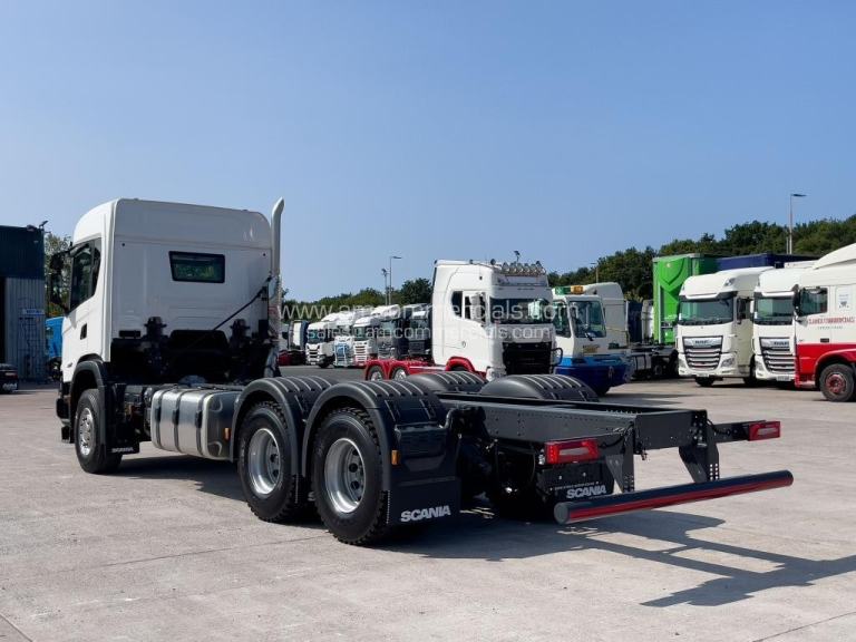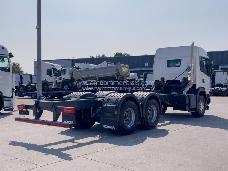 2026 Scania 460G Super XT Chassis Cab. 6X4 Double Drive, Dual PTO Prep, Heavy Duty Flitch Plated Chassis, Integrated Scania Retarder, Mirror Guards, Steel Front XT Bumper, Vertical Exhaust, Top Lights, Camera Kit, Delivery Miles Only, 615L Fuel, 5.9M WB To Rear Drive Axle, 5.2M Between Both Drive Axles, 4.56M To First Drive Axle. Finance Available subject to status.