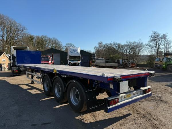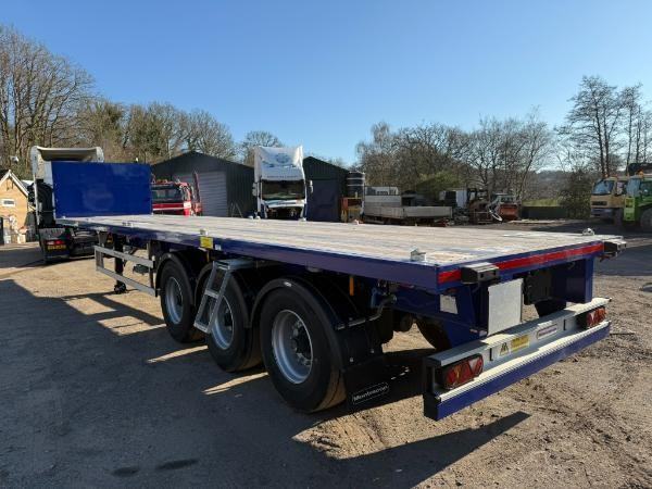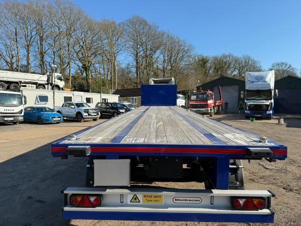 2024 Montracon 40ft (12500m) Flatbed Tri Axle Trailer, 12 Twist Locks, Headboard Tested To 18.5 Ton, Maximum Payload 37 Ton, Gross Weight 39000 kgs, BPW Axles, Drum Brakes, Air Suspension, Side Ladder, Fall Protection, MOT November 2026.