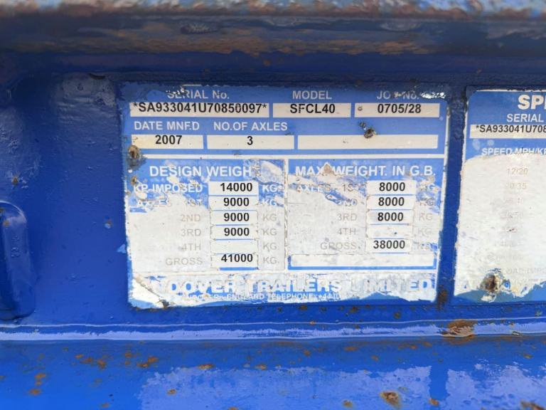 ANDOVER 2007 TRIAXLE LOW LOADER TRAILER, REAR LIFT AXLE, BPW AXLES, 80% TYRES.