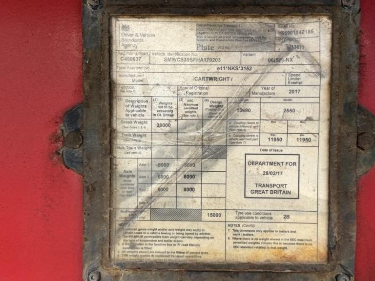 2017 Cartwright, 4.556 Mt Curtainsider, Pillarless, Internal Straps, Bpw Axles, Tool Box, Infills, Tested To January 2027, Finance Available Subject To Status Ref- C 450637