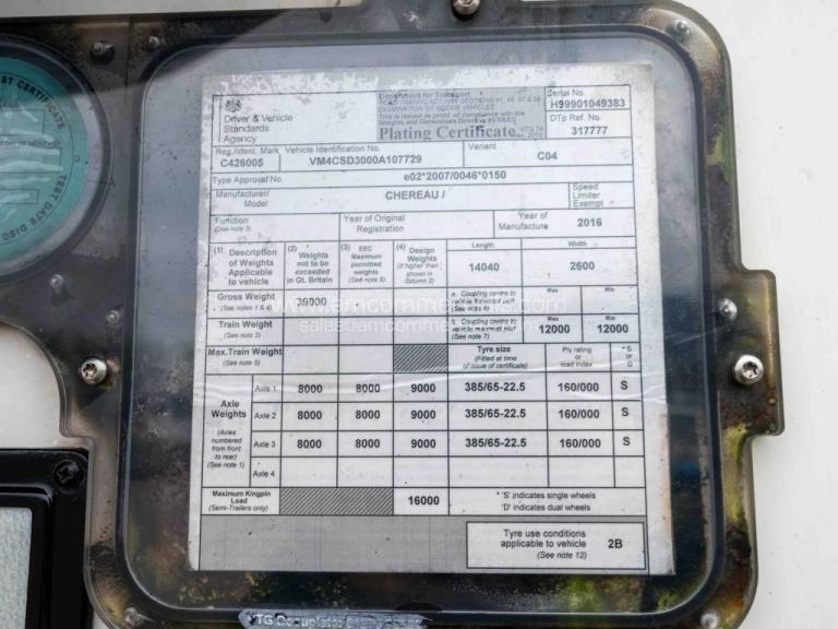 2016 Chereau Meat Rail Fridge Trailer, 250 stainless steel hooks, Split Doors, 11787 Engine Hours, BPW Axles, Carrier Vector 1950 Fridge Unit, Rear Barn Doors, 2.55M Loading Height, 2.5M Internal Width, Tool Boxes, Raise/Lower Valve, Excellent Condition, Finance Available Subject to Status.