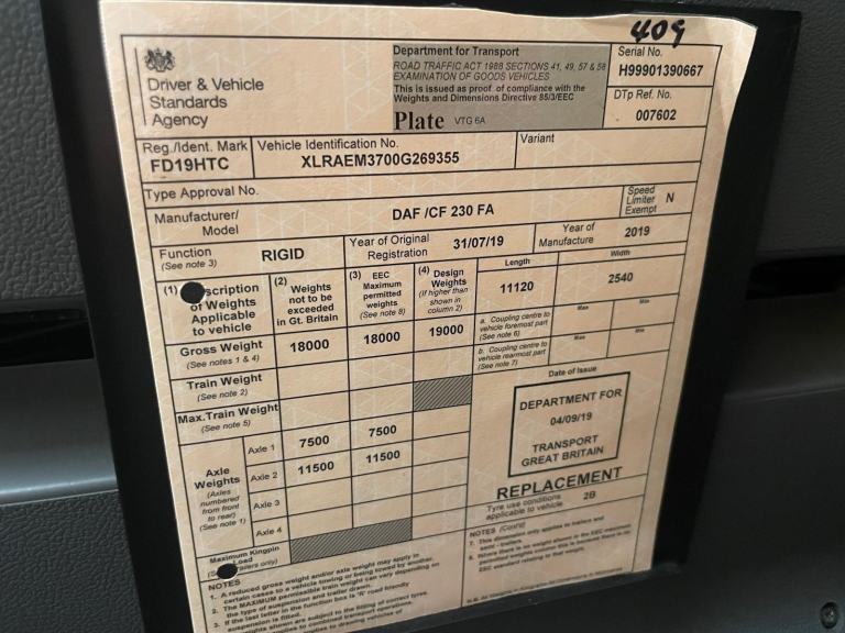 Posting for 3+ yearsDAF CF 230 *EURO 6* 4X2, 18 TONNE CURTAINSIDER - 2019 - FD19 HTC
