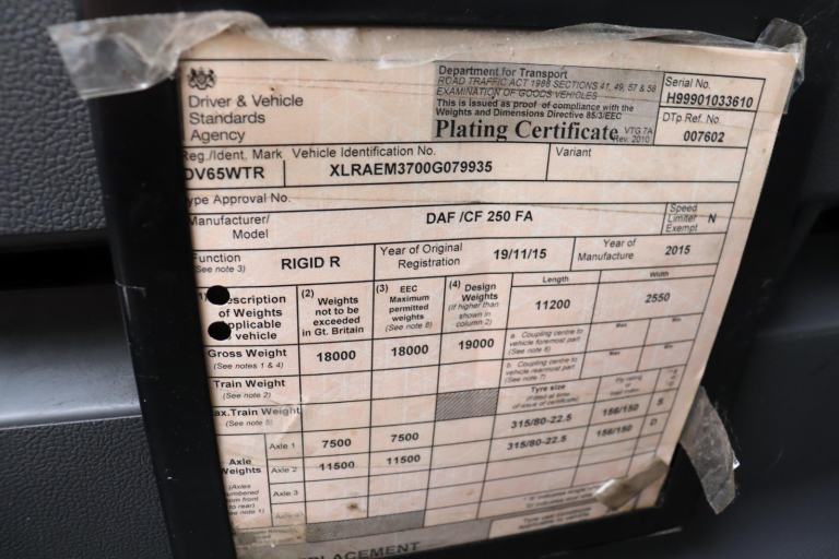 DAF CF 250 4X2 28FT SLEEPER CURTAINSIDE (2015)