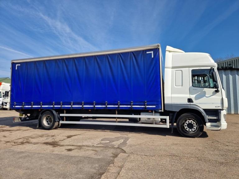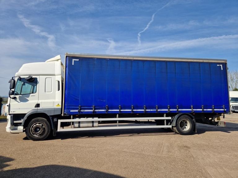 2019, Daf CF 260, 4x2, 28ft Curtainsider Body, Hi Roof Sleeper Cab, Automatic Gearbox, Underslung Tail Lift, Rear Air Suspension, Air Conditioning, Night Heater, Lane Departure System, Cruise Control, Reverse Camera, Electric Windows and Mirrors, Heated Mirrors.