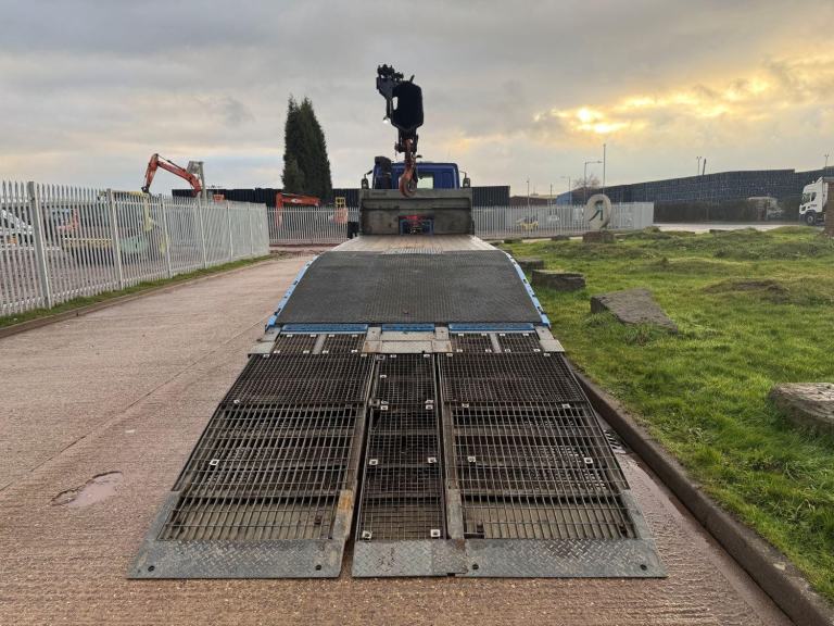 CRANE CAPACITY: 5600 KG @ 2.5 MTRS, 3895 KG @ 4.4 MTRS, 2610 KG @ 6.35 MTRS, 1920 KG @ 8.4 MTRS, 1515 KG @ 10.5 MTRS. BODY DIMENSIONS: 18' 5" FLAT / 8' 2" SLOPE / 8' 6" RAMP