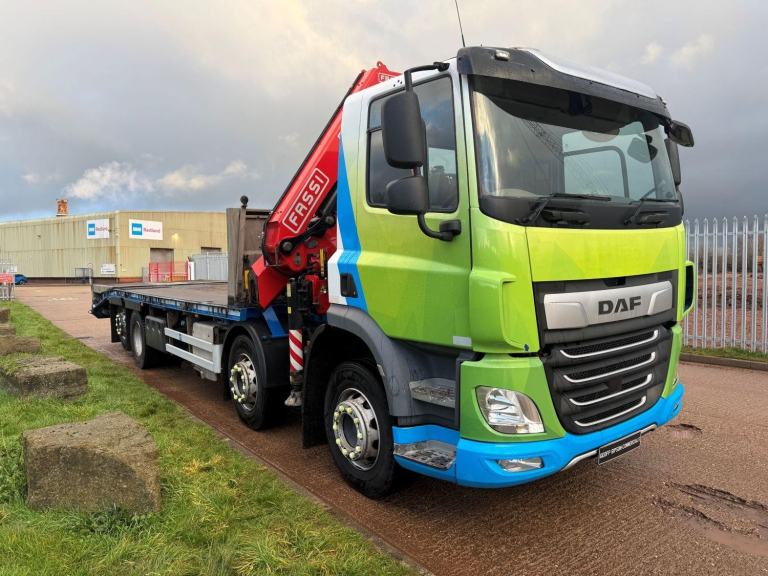 Posting for 5+ yearsDAF CF 410 2021 (21) EURO 6, 8X2 REAR LIFT, CHEESEWEDGE BEAVERTAIL, FASSI F195 R