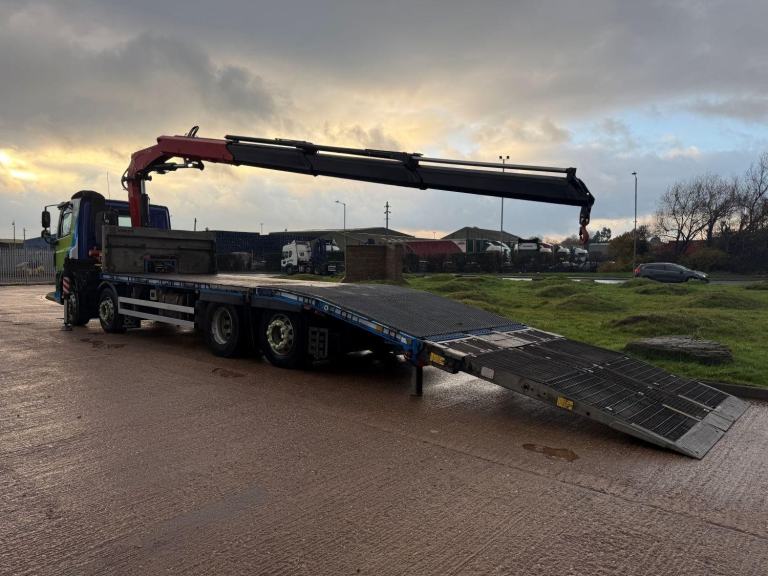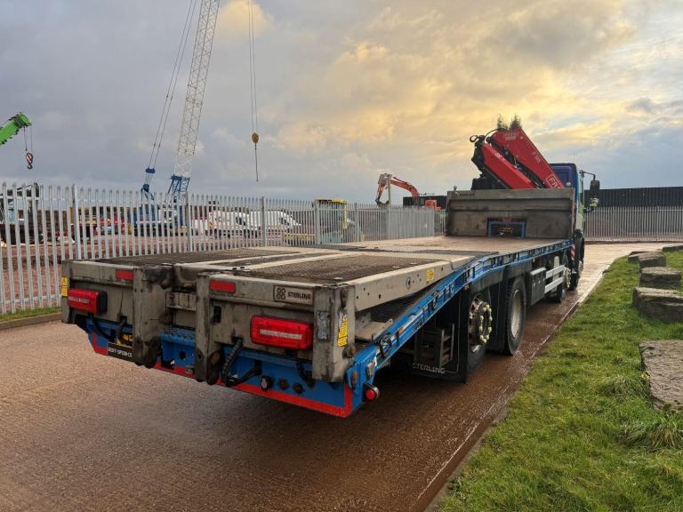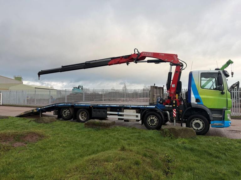 DAF CF 410 2021 (21) EURO 6, DAY CAB, 8X2 REAR LIFT AXLE, 28' 7" STERLING CHEESEWEDGE BEAVERTAIL BODY, FASSI F195 REMOTE CONTROLLED CRANE, 3 EXTENSIONS, COME UP RHINO 12 WINCH, AUTO GEARBOX, CRUISE CONTROL, 3 STAGE RETARDER, TOOL BOX, BEACONS, SUN VISOR, SUN ROOF, AIR CON, STEERING WHEEL CONTROLS, ELECTRIC WINDOWS / MIRRORS, AIR SUSPENSION, 80% TYRES, 128,000 MILES, JULY 26 TEST.