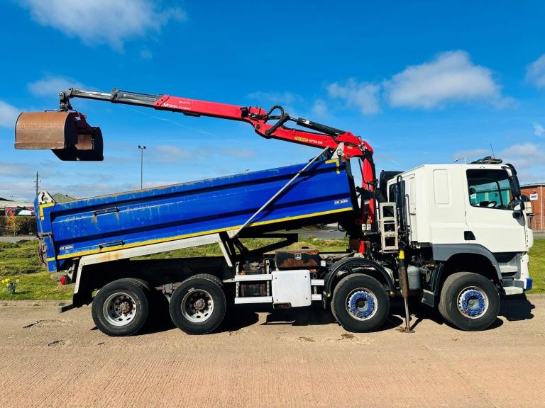 DAF CF 450 2019 EURO 6, SLEEPER CAB, 8X4 TIPPER GRAB, KELBERG STEEL BODY, PALFINGER EPSILON M125 CLASSIC CRANE, 2 EXTENSIONS, KINSHOFER CLAMSHELL BUCKET, TRANSCOVER SHEET, CAMERA, EDBRO TIPPING GEAR, AUTO GEARBOX, CRUISE CONTROL, ENGINE BRAKE, TOOL BOX, TOP LIGHT BAR, SUN ROOF, AIR CON, STEERING WHEEL CONTROLS, ELECTRIC WINDOWS / MIRRORS, CD, 6 LEAF STEEL SUSPENSION, 150,000 MILES.
