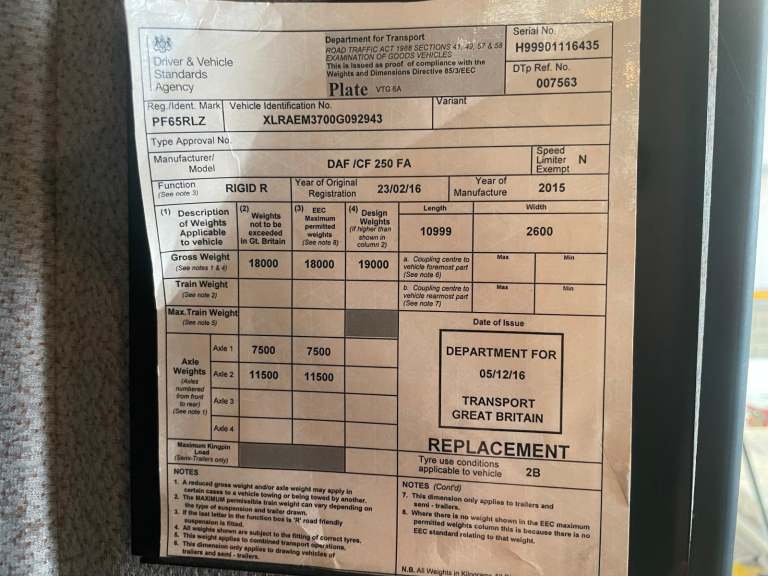 Posting for 3+ yearsDAF CF250 *EURO 6*, 4X2 18 TONNE FRIDGE/FREEZER – 2016 – PF65 RLZ