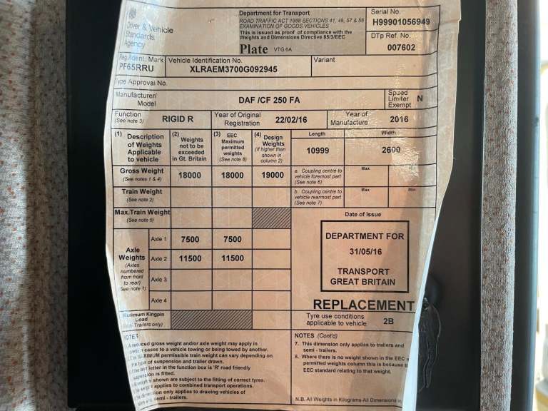 Posting for 3+ yearsDAF CF250 *EURO 6*, 4X2 18 TONNE FRIDGE/FREEZER – 2016 – PF65 RRU
