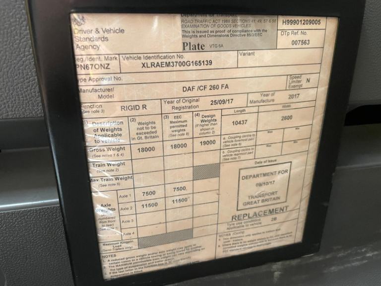 Posting for 3+ yearsDAF CF260 *EURO 6*, 4X2 18 TONNE FRIDGE/FREEZER – 2017 – PN67 ONZ