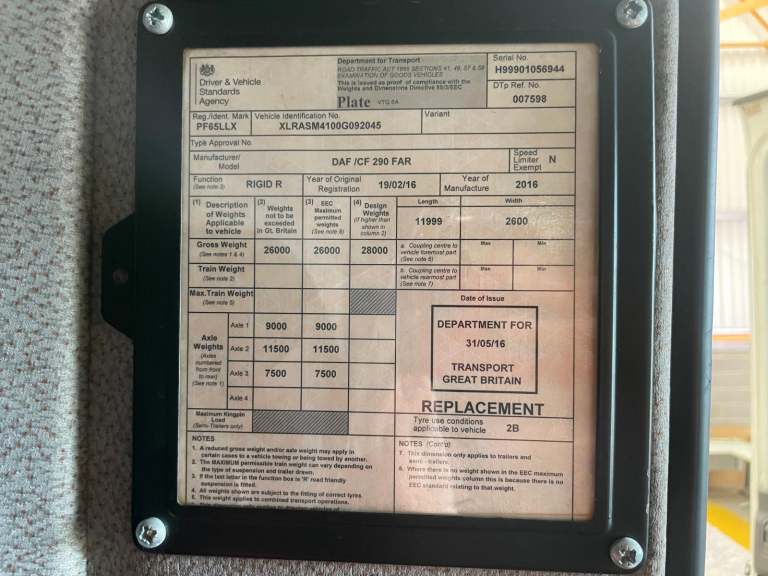 Posting for 3+ yearsDAF CF290 *EURO 6*, 6X2 26 TONNE INSULATED FRIDGE/FREEZER – 2016 – PF65 LLX