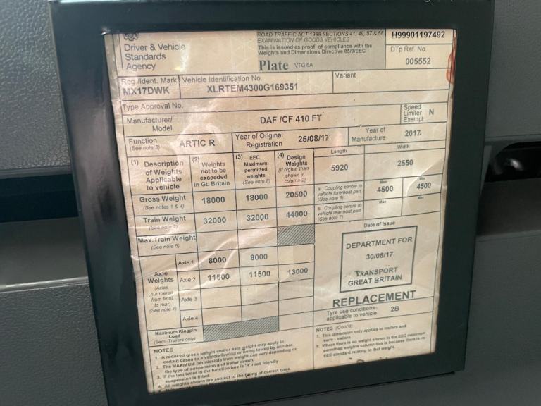 Posting for 3+ yearsDAF CF410 SPACE CAB *EURO 6*, 4X2 TRACTOR UNIT – 2017 – MX17 DWK