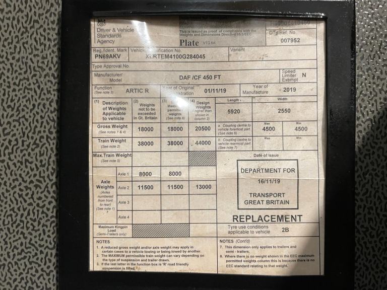 Posting for 3+ yearsDAF CF450 *EURO 6*, 4X2 TRACTOR UNIT - 2019 - PN69 AKV