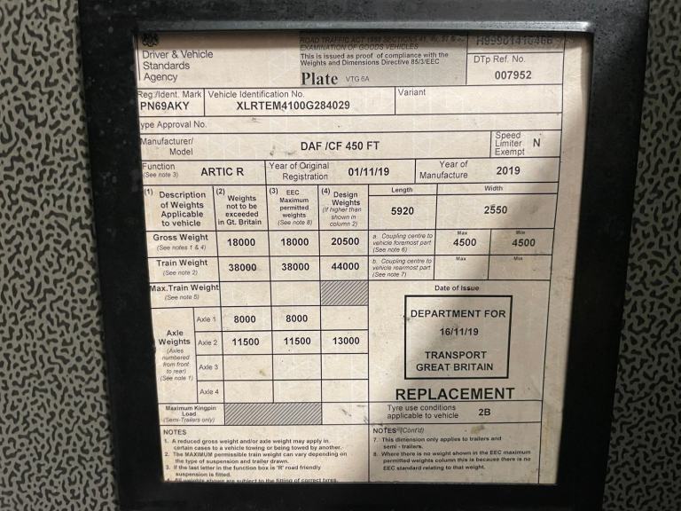 Posting for 3+ yearsDAF CF450 *EURO 6*, 4X2 TRACTOR UNIT - 2019 - PN69 AKY