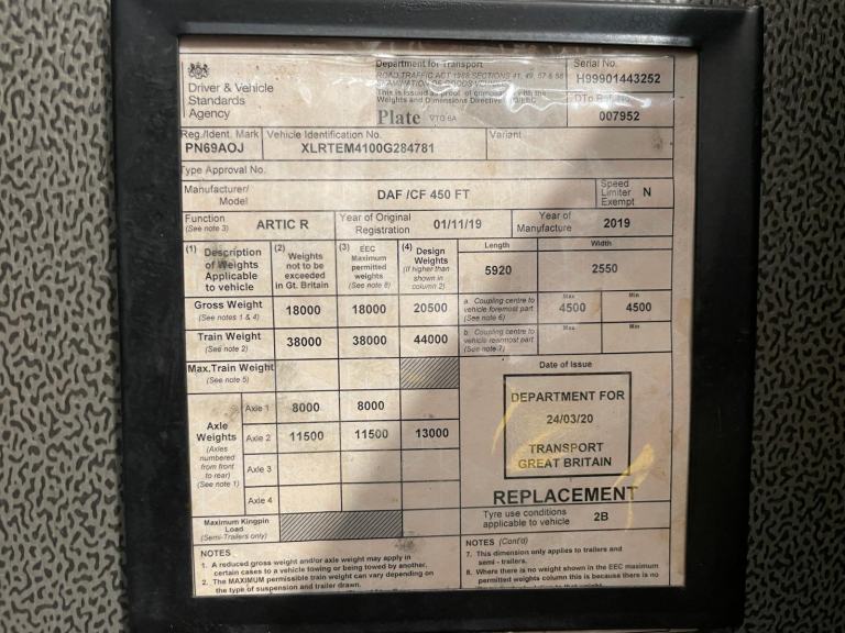 Posting for 3+ yearsDAF CF450 *EURO 6*, 4X2 TRACTOR UNIT – 2019 – PN69 AOJ