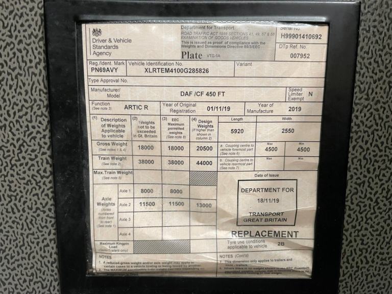 Posting for 3+ yearsDAF CF450 *EURO 6*, 4X2 TRACTOR UNIT - 2019 - PN69 AVY