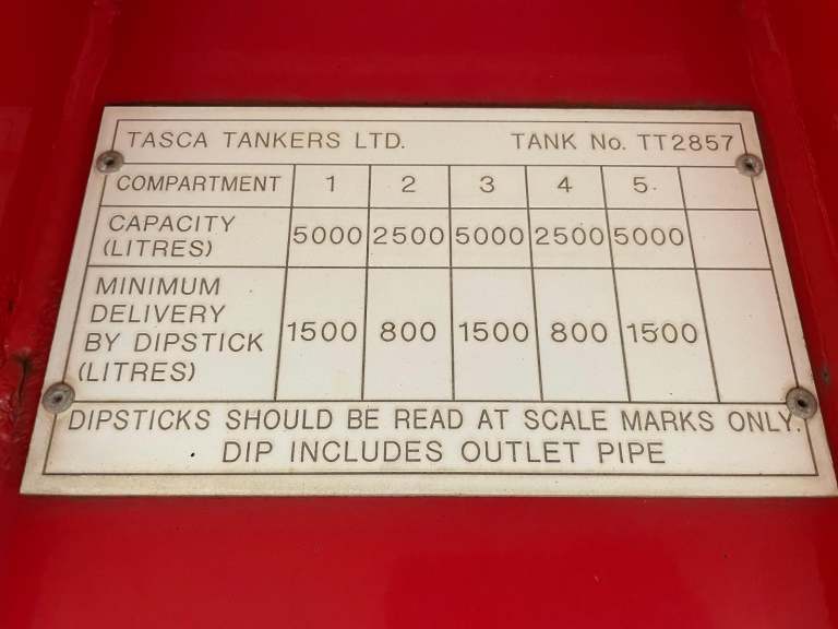 Tasca Aluminium 20,000L Fuel Tanker Body C/w 5 Compartments And Front Mounted Hose Reel.