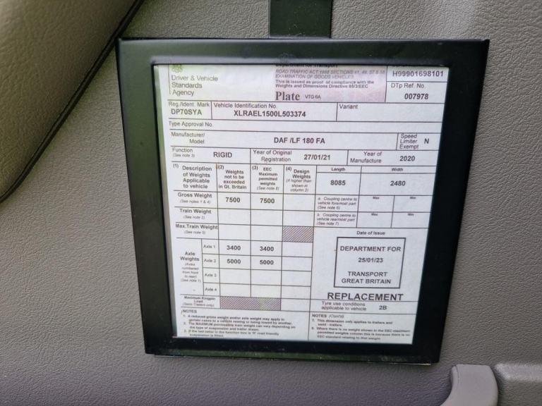 2021, Daf LF 180, 4x2, 20ft 7 inch Curtainsider Body, 7.5 Tonner, Manual Gearbox, Day Cab, Underslung Tail Lift, Rear Barn Doors, Lane Departure System, Adaptive Cruise Control, Electric Windows and Mirrors, Heated Mirrors, On Board Weigher, Twin Passenger Seats, Good Tyres all round.