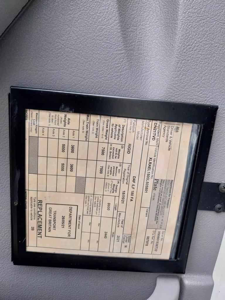 Posting for 6+ yearsDaf LF 180, 2021, 22ft Box Body Truck, 7.5 Ton, 282000 Kms, Euro 6