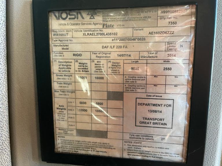 Posting for 3+ yearsDAF LF 220 *EURO 6*, 4X2 16 TONNE FRIDGE/FREEZER – 2014 – WA14 AUT