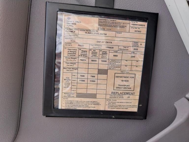 2020, DAF LF 230, Euro 6, Automatic Gearbox, 18 Tonner, 4x2, 26ft Box Body Truck, Underslung Tail lift, Good Tyres All Round, Day Cab, Electric Windows, Heated Mirrors, Manufactures Phone Kit, Cruise Control, Lane Departure System.