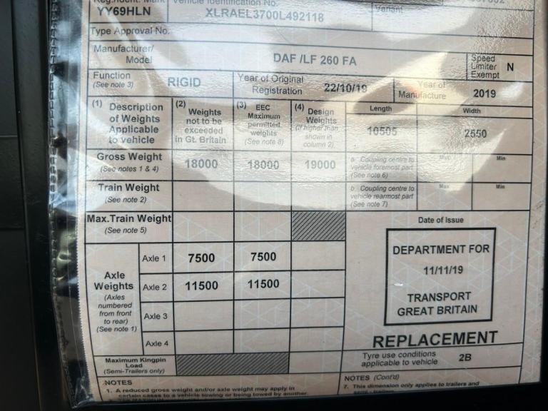 Posting for 9+ yearsDAF LF 260 18 TONNE *EURO 6* BOX VAN 2019 – YY69 HLN