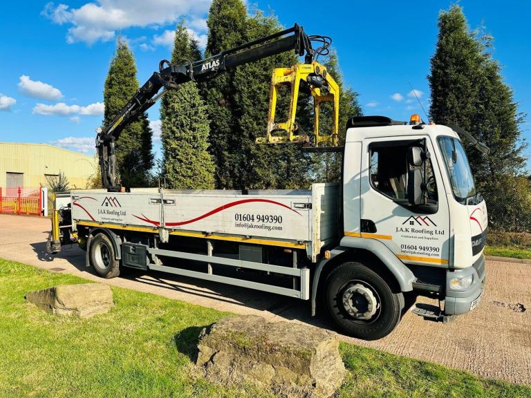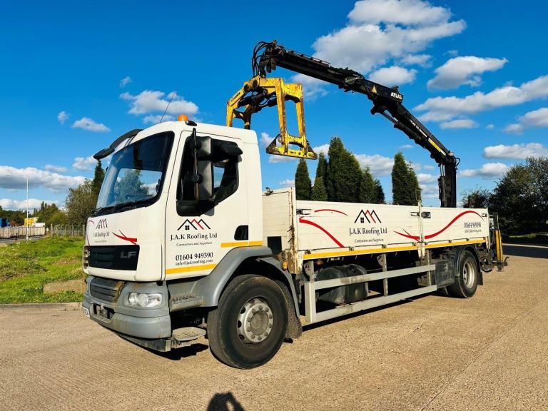 DAF LF 55.220 2011 (61) DAY CAB, 18 TON, 21' DOUBLE DROPSIDE BODY, REAR MOUNNTED ATLAS 92.2 REMOTE CONTROLLED CRANE, 1 EXTENSION, KINSHOFFER BRICK GRAB, AUTO GEARBOX, CRUISE CONTROL, CAMERA, 2 X TOOL BOXES, BEACONS, AIR CON, STEERING WHEEL CONTROLS, ELECTRIC WINDOWS, CD, STEEL SUSPENSION, 225,000 MILES.