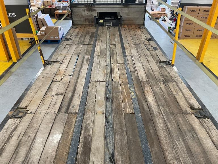 28Ft Beavertail Flatbed Body C/w Wood Plank Flooring And Lashing Rings.