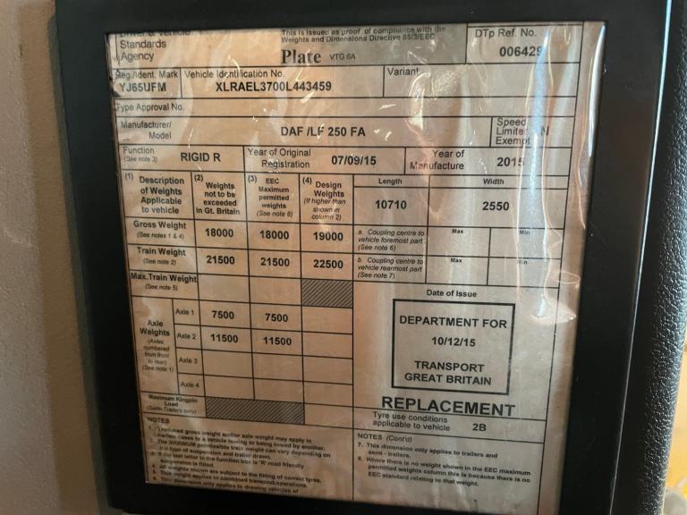 Posting for 3+ yearsDAF LF250 4X2, *EURO 6* 18 TONNE BEAVERTAIL FLATBED - 2015 - YJ65 UFM