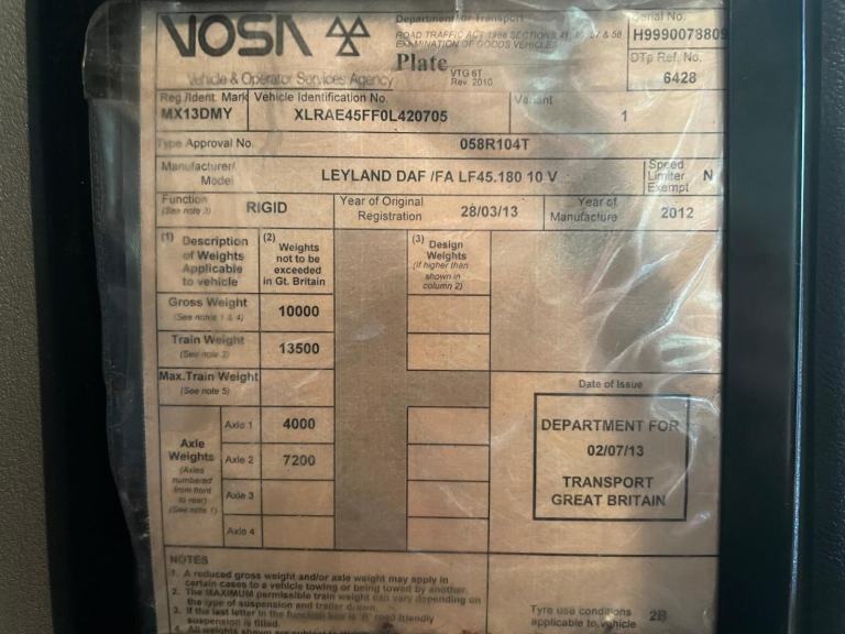 Posting for 3+ yearsDAF LF45 180 EURO 5 4X2 10 TONNE REMOVAL/BOX TRUCK - 2013 - MX13 DMY