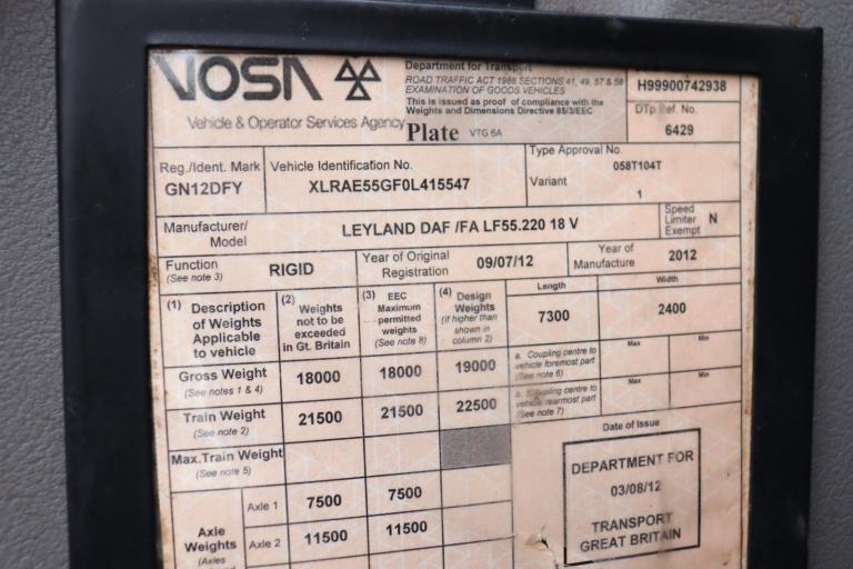DAF LF55 220 4X2 8,000L WHALE VACUUM TANKER (2012)