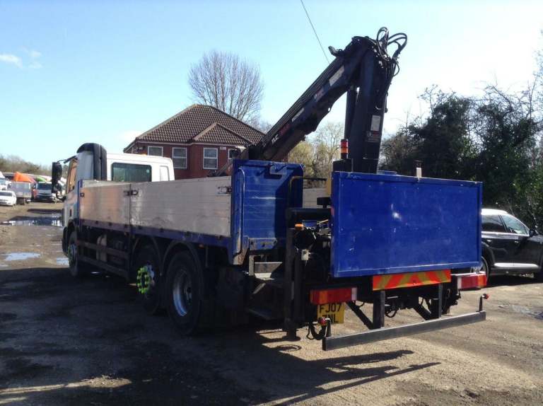 REF TG 2854 .P.O.A.DAF CF 75 310 6X2 DAY CAB 270000 KMS REVERSING CAMERA 26 TONNE GROSS MIDLIFT AXLE FITTED WITH 21 FOOT LONG ALUMINIUM DROPSIDE BODY AND REAR MOUNTED TEREX ATLAS TLC 92.2 CRANE 2 HYDRAULIC LEGS AND EXTENSIONS RADIO REMOTE CONTROLL VERY GOOD CONDITION ONE COMAPNY OWNER NO VAT IF GOING FOR EXPORT .P.O.A.REF TG2854